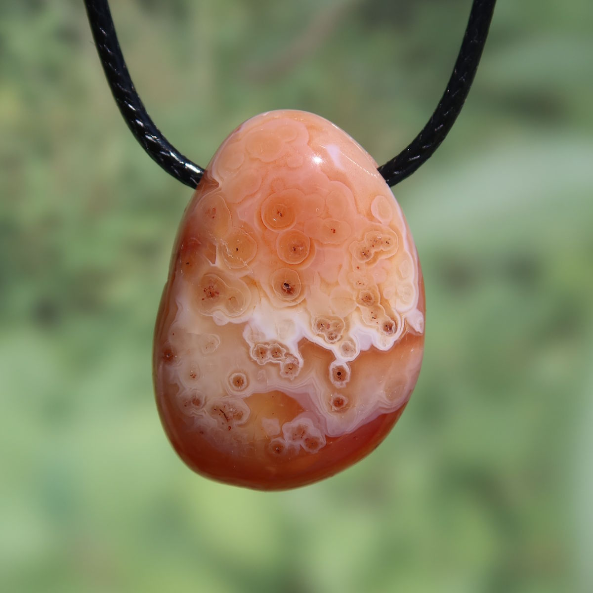 Unser Karneol Anhänger bringt Wärme, Energie und Lebensfreude in deinen Alltag. Karneol gehört zur Familie der Chalcedone und besticht durch seine lebendige Farbpalette, die von hellem Orange bis zu tiefem Rot reicht – oft durchzogen von sanften, natürlichen Maserungen. Diese feinen Strukturen machen jeden Stein einzigartig und verleihen ihm seinen ganz eigenen Charakter. Jeder Anhänger wird sorgfältig ausgewählt und in unserer eigenen Werkstatt mit Liebe und Können durchgebohrt!