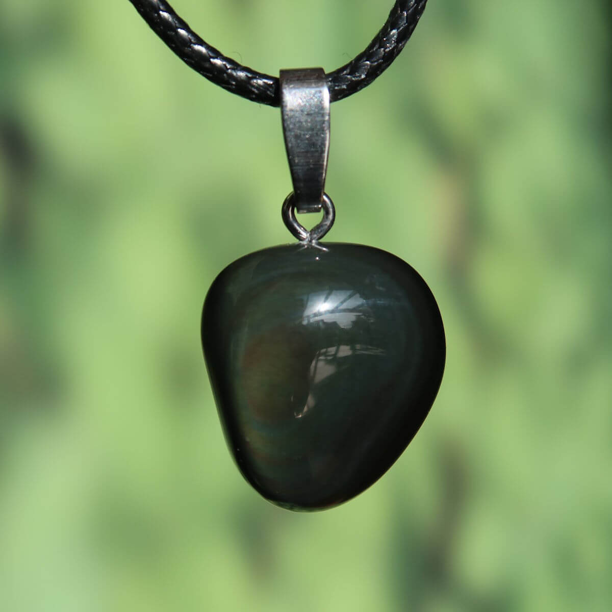 Schwarz mit überraschenden Farbspielen – dieser Regenbogenobsidian Anhänger wirkt auf den ersten Blick ruhig, kann aber bei genauerem Hinsehen ein faszinierendes Farbfeuer offenbaren. Jede Bewegung bringt neue Schimmer und Reflexe zum Vorschein, wodurch der Regenbogenobsidian Anhänger lebendig und dynamisch wirkt. Jeder Anhänger wird sorgfältig ausgewählt und in unserer eigenen Werkstatt mit einer echten Silberöse versehen, welche eine Rhodium Beschichtung besitzt, die das Silber vor dem Anlaufen schützt.