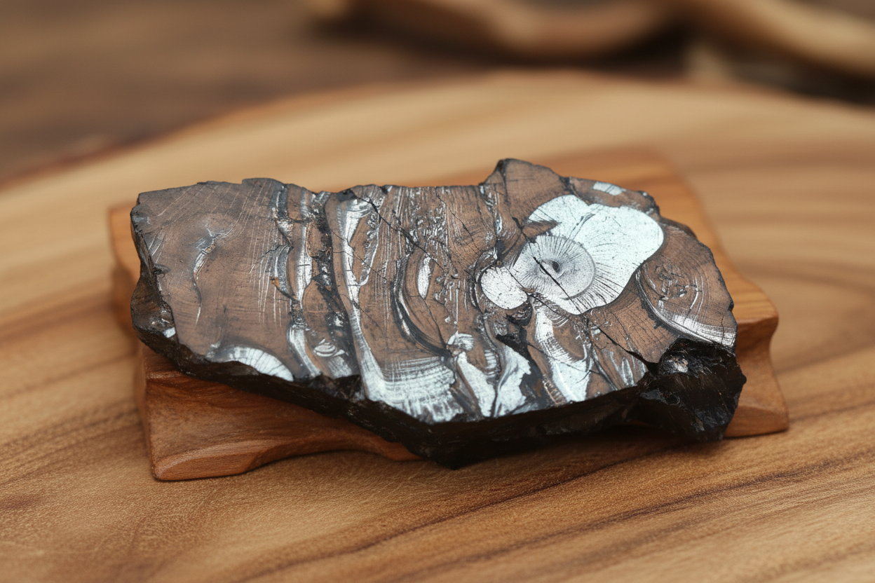 Edel-Schungit ist eine besondere Form des Schungits. Schungit an sich ist ein schwarzes, kohlenstoffhaltiges Mineral, das hauptsächlich in der Region Karelien in Russland vorkommt. Es wird in verschiedene Kategorien unterteilt, die sich in ihrer Kohlenstoffkonzentration und auch in ihren chemischen Eigenschaften unterscheiden. Der Unterschied zwischen „normalem“ Schungit und Edel-Schungit liegt in der Reinheit des Materials. Während gewöhnlicher Schungit meist einen Kohlenstoffanteil von etwa 30-50% hat, enthält Edel-Schungit deutlich mehr, bis zu 98% reinen Kohlenstoff, was ihn zu einem besonders wertvollen und seltenen Mineral macht.