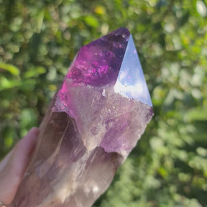 All of our amethyst tips are purely natural products, some contain phantom growth, which means you can see the individual growth spurts like annual rings on trees, others have a beautiful shimmer, each one is unique! These crystals have grown naturally in shape, only the tip has been polished a little to bring out the beauty even better.
