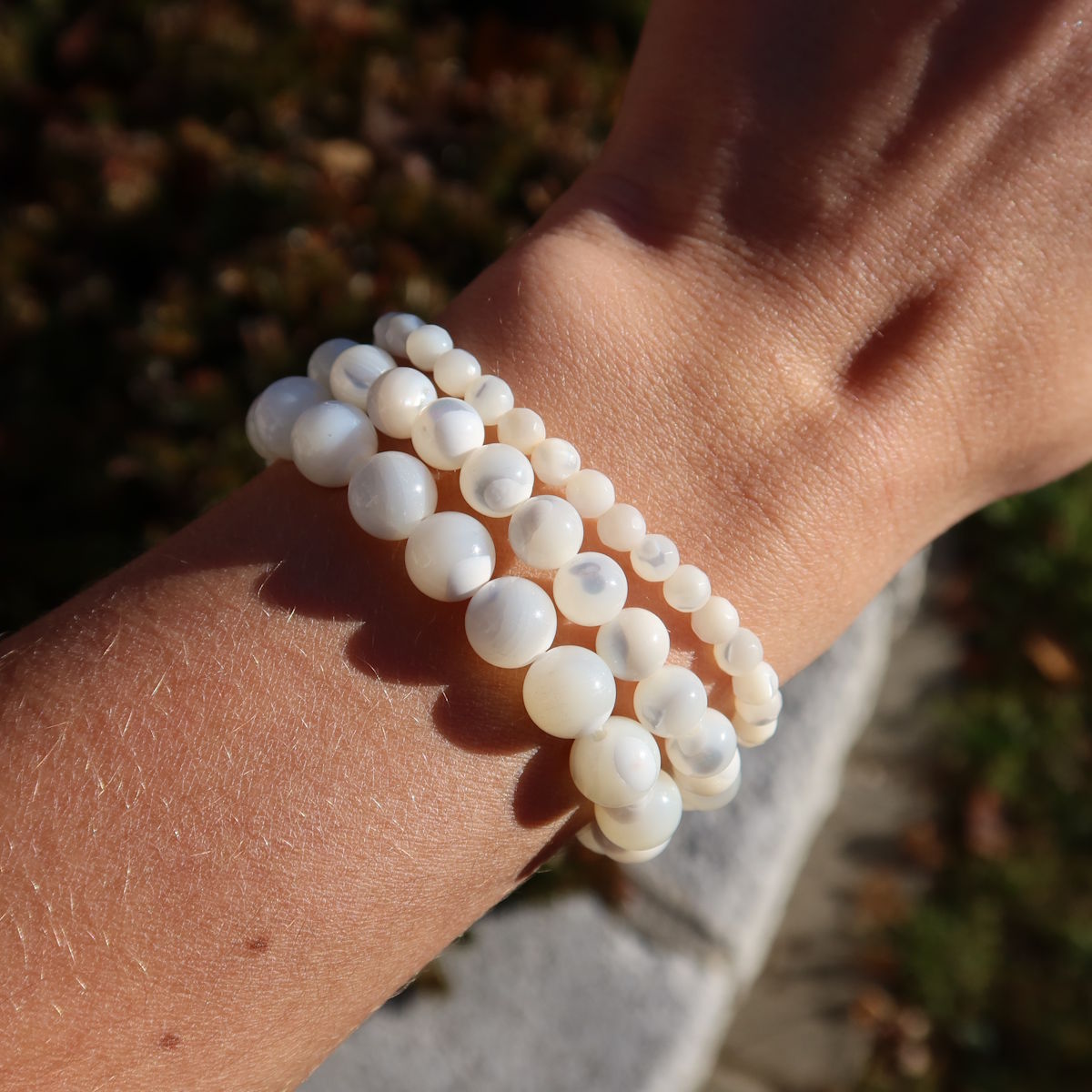 Dieses wunderschöne Perlmutt Armband überzeugt durch sein sanftes Schillern und die liebevolle Ausstrahlung.
