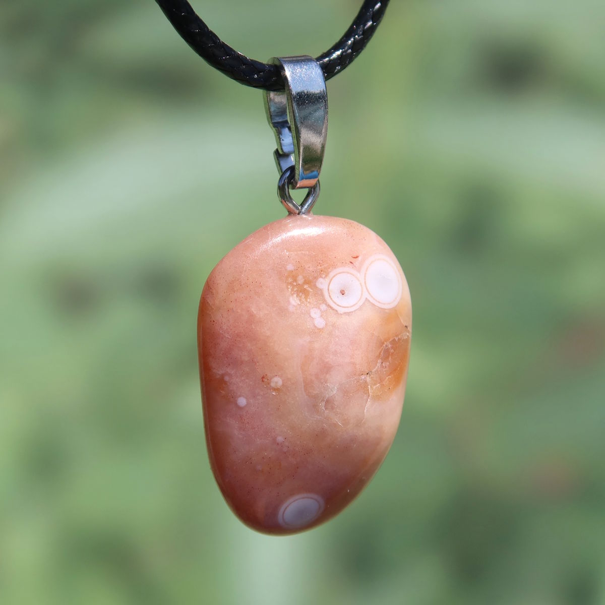 Unser Karneol Anhänger bringt Wärme, Energie und Lebensfreude in deinen Alltag. Karneol gehört zur Familie der Chalcedone und besticht durch seine lebendige Farbpalette, die von hellem Orange bis zu tiefem Rot reicht – oft durchzogen von sanften, natürlichen Maserungen. Diese feinen Strukturen machen jeden Stein einzigartig und verleihen ihm seinen ganz eigenen Charakter. Jeder Anhänger wird sorgfältig ausgewählt und in unserer eigenen Werkstatt mit einer echten Silberöse versehen, welche eine Rhodium Beschichtung besitzt, die das Silber vor dem Anlaufen schützt.