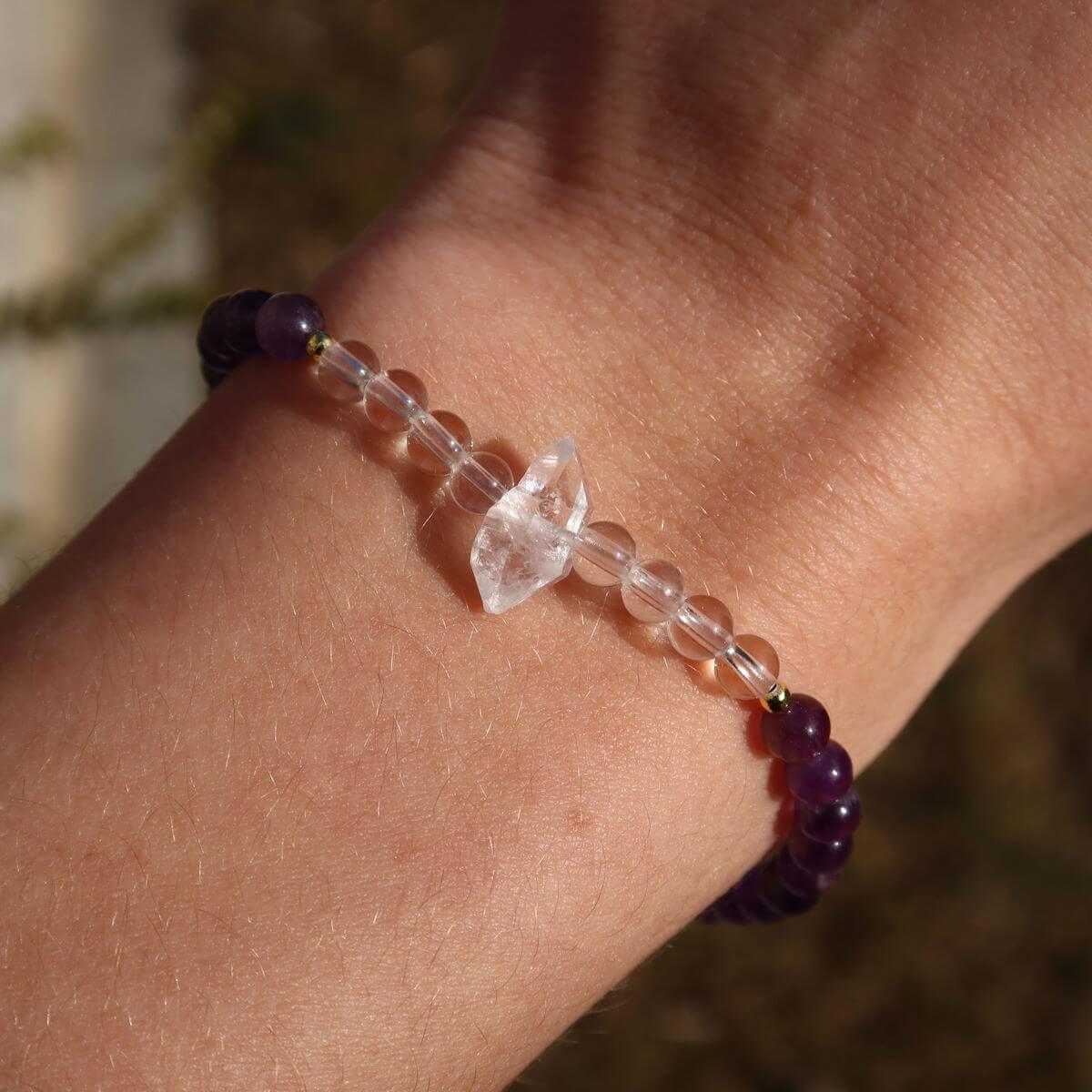 Amethyst mit Bergkristall und Herkimerquarz Edelstein Armband handgefertigt