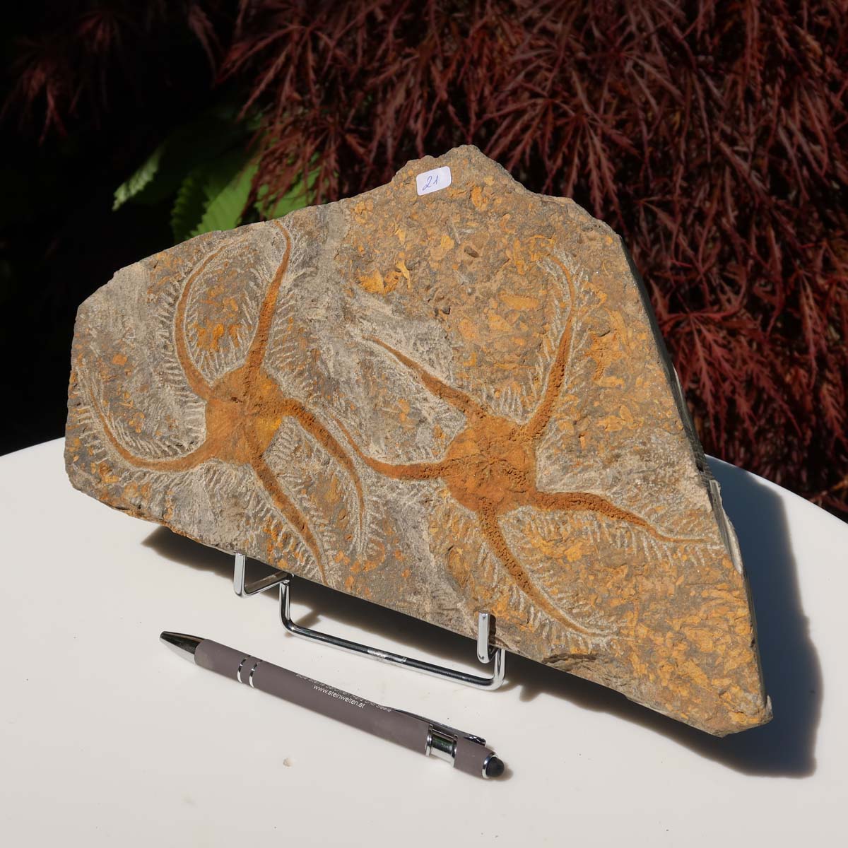 Versteinertes Fossil - Seestern (Schlangensterne Ophiura sp.) 465 Millionen Jahre - 30x16 cm - Nr. 21