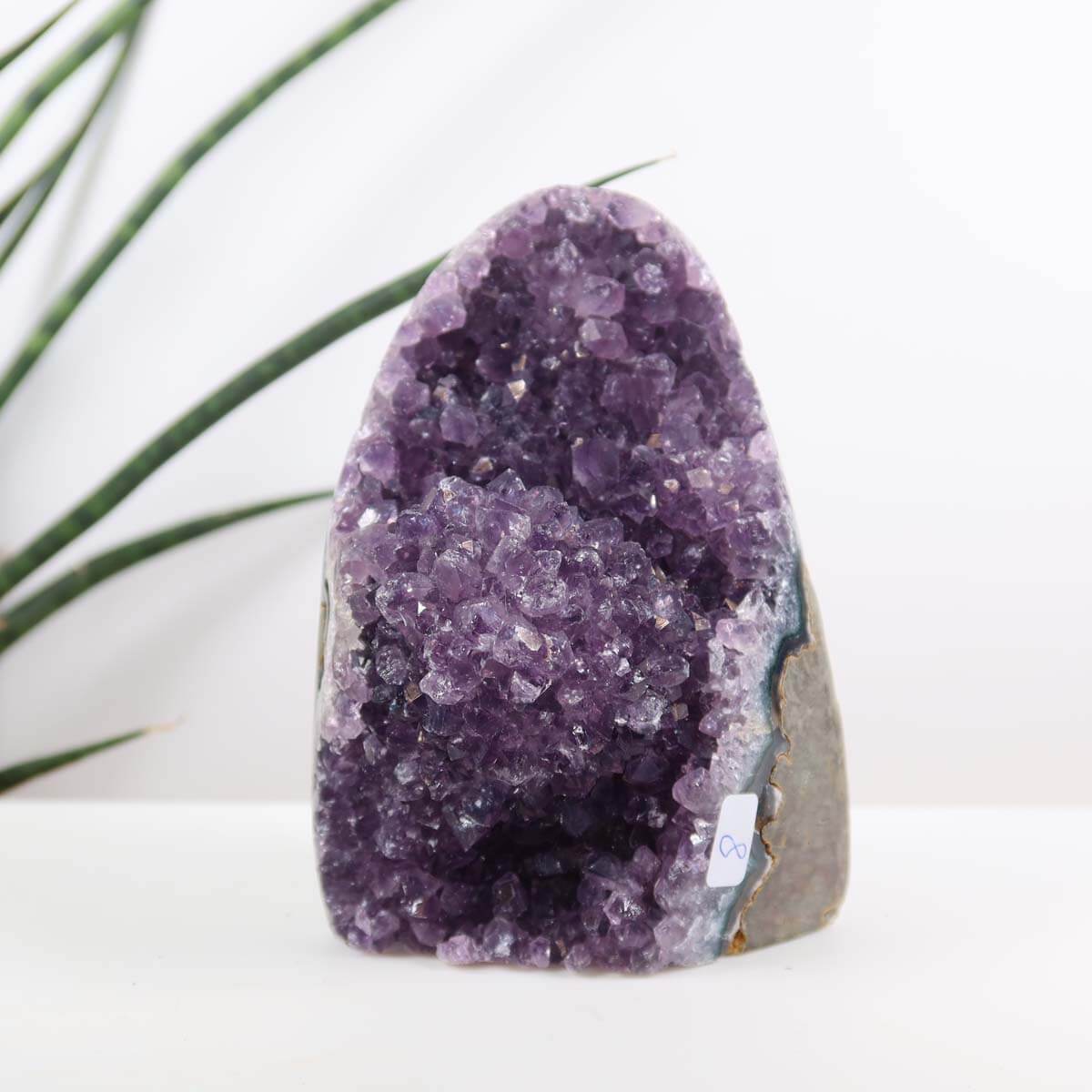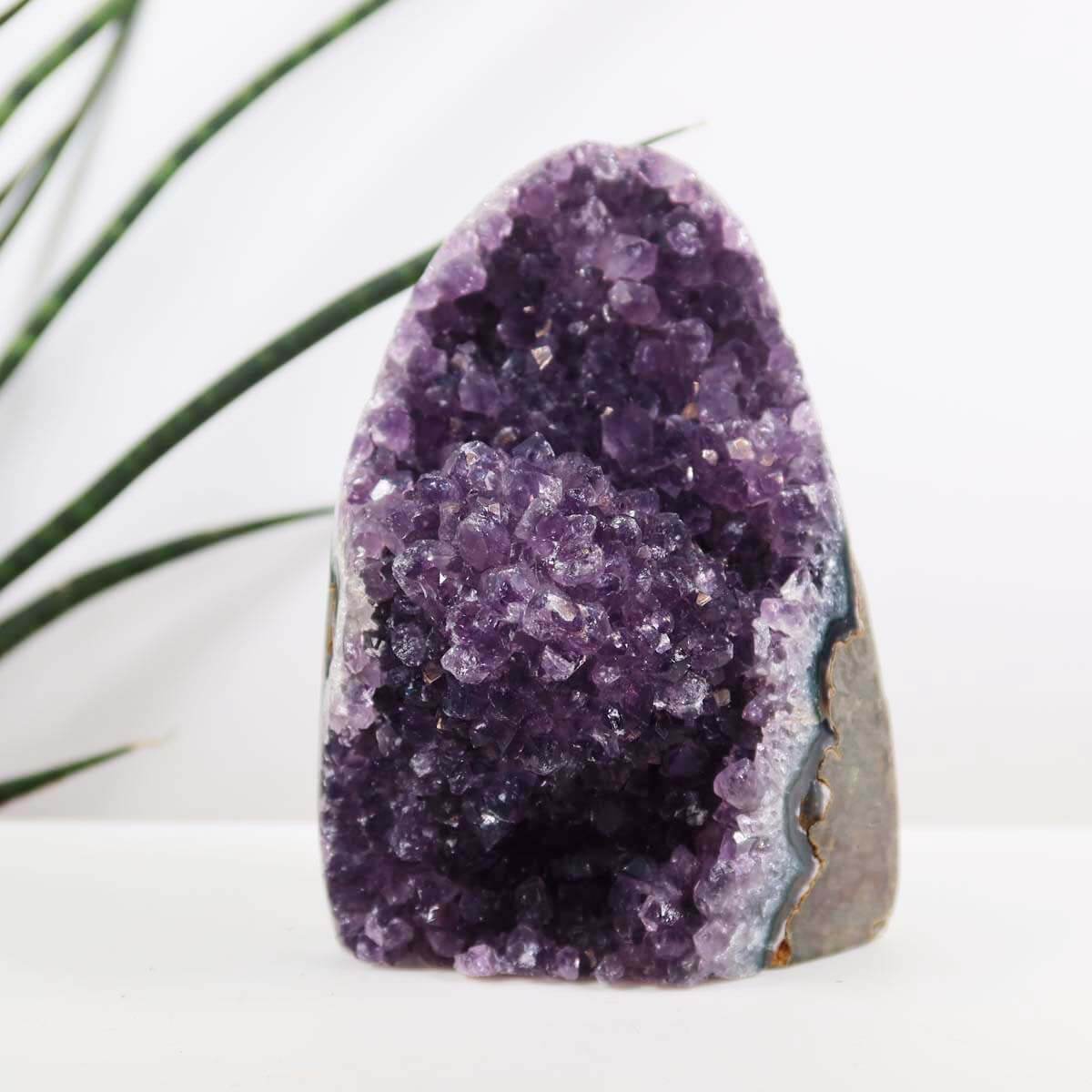 Dieser hochwertige Amethyst aus Uruguay hat einen besonders dunklen, intensiven Farbton. Uruguay Amethyste Geoden zeichnen sich durch die von Natur aus sehr regelmäßigen Kristalle und äußerst dunkle lila Farbe aus. Durch den regelmäßigeren Wuchs leuchten und funkeln diese Drusen noch intensiver als ihre Verwandten aus Brasilien.