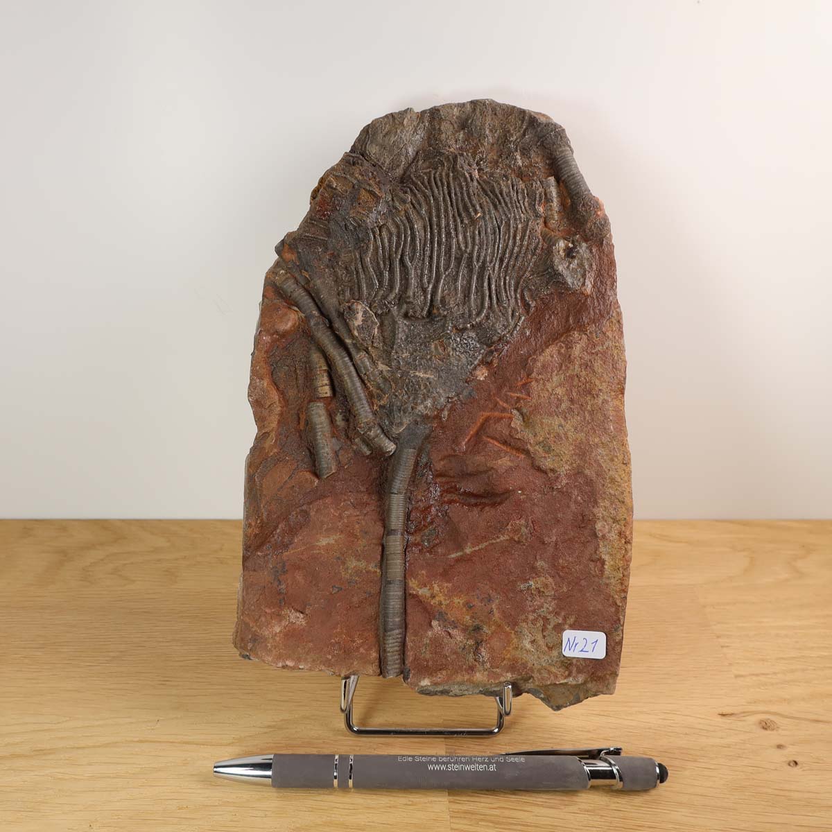 Versteinertes Fossil - Seelilien (Scyphocrinites elegans) 20x13 cm - 425 Millionen Jahre -Unikat Nr. 21