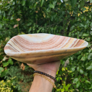 Ein Stück Natur für dein Zuhause! Verleihe deinem Raum ein besonderes Highlight mit dieser einzigartigen Steinschale aus Aragonit. Die natürlichen Maserungen und warmen Erdtöne machen jede Edelsteinschale zu einem echten Unikat. Sie werden in Marokko in Handarbeit angefertigt und eigenen sich perfekt für das Aufbewahren von Schmuck, kleineren Steinchen oder als Dekoelement.