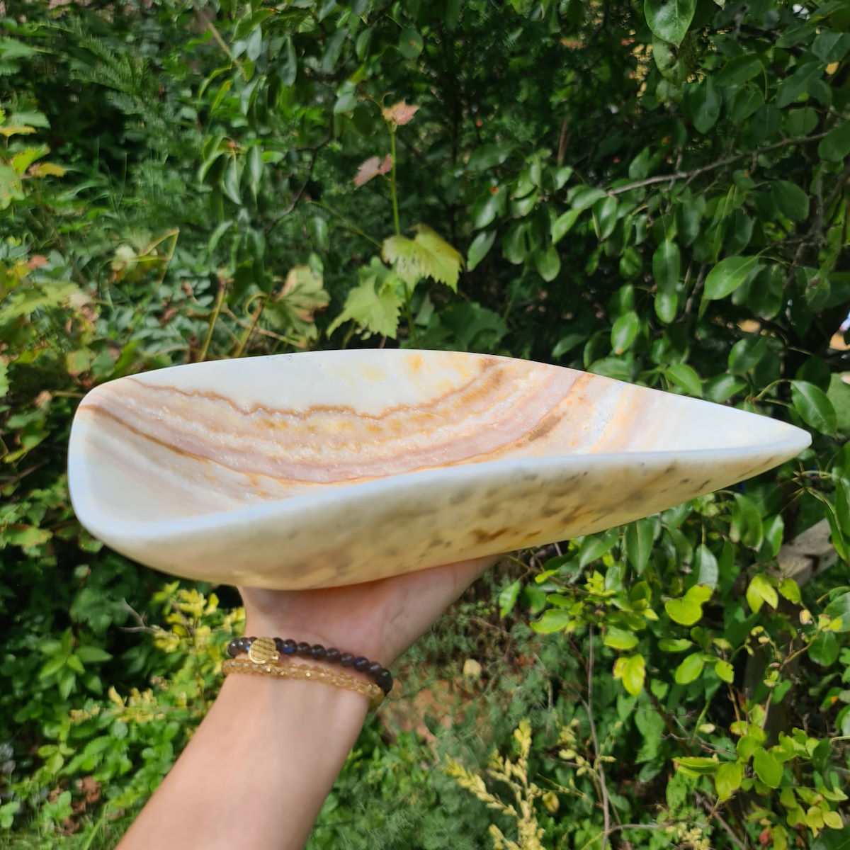 Ein Stück Natur für dein Zuhause! Verleihe deinem Raum ein besonderes Highlight mit dieser einzigartigen Steinschale aus Aragonit. Die natürlichen Maserungen und warmen Erdtöne machen jede Edelsteinschale zu einem echten Unikat. Sie werden in Marokko in Handarbeit angefertigt und eigenen sich perfekt für das Aufbewahren von Schmuck, kleineren Steinchen oder als Dekoelement.