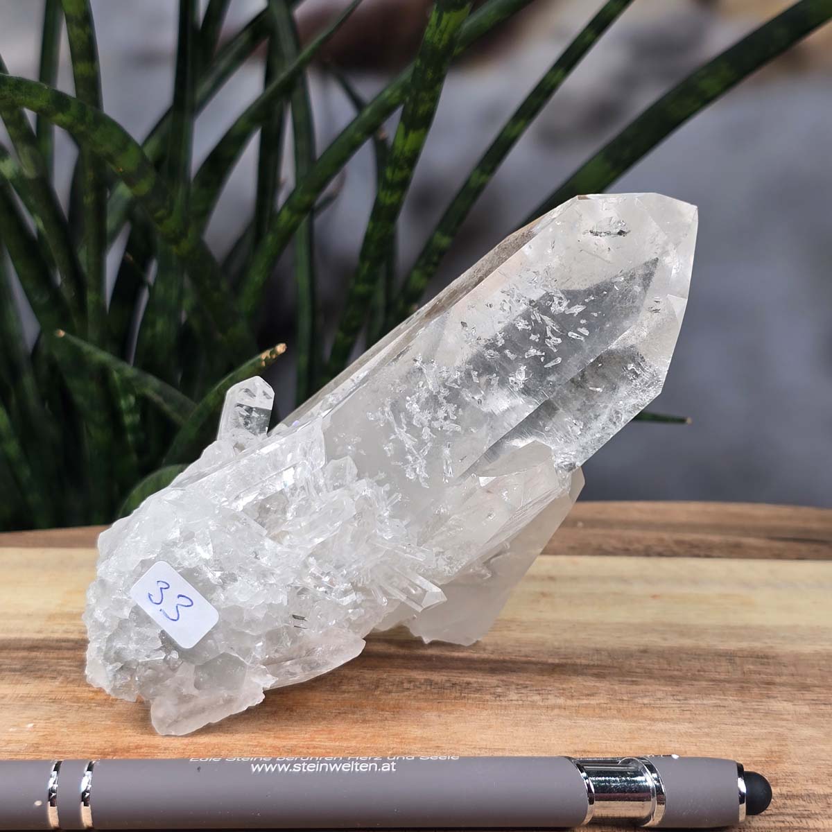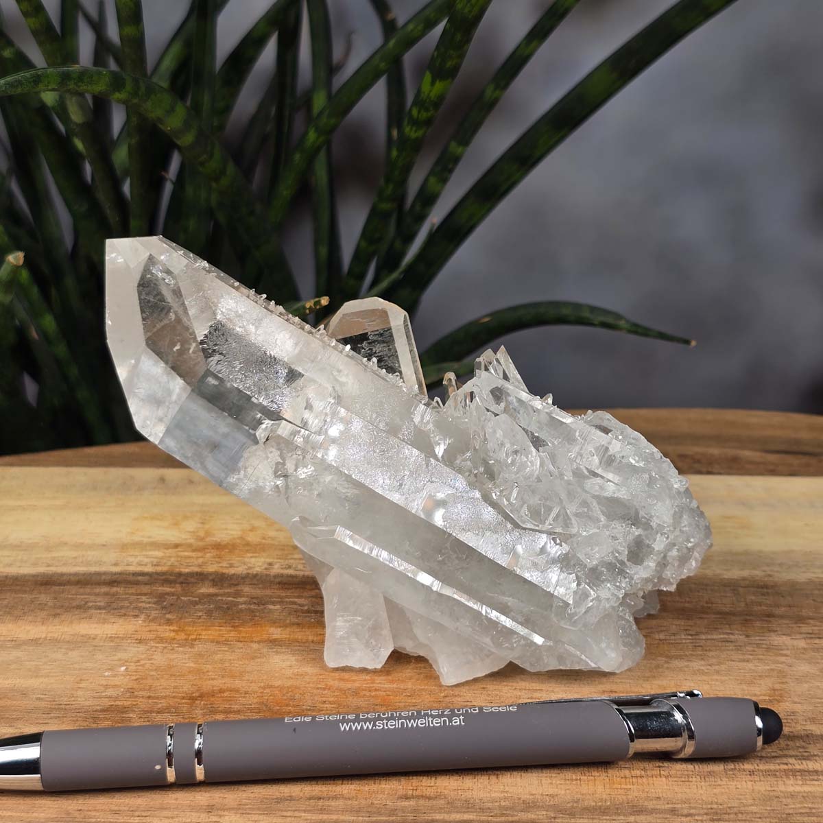 Il quarzo ialino è una pietra particolarmente straordinaria! Rappresenta chiarezza, stabilità e purezza. Questi pezzi possono essere usati in modo eccellente per ricaricare altre pietre e braccialetti, pulendoli prima con acqua corrente e poi lasciandoli tutta la notte sopra il pezzo di quarzo ialino. Il quarzo ialino ricorda alle altre pietre la loro forza e le rigenera. Le fette di quarzo ialino richiedono poca manutenzione, basta spolverarle o aspirarle delicatamente.
