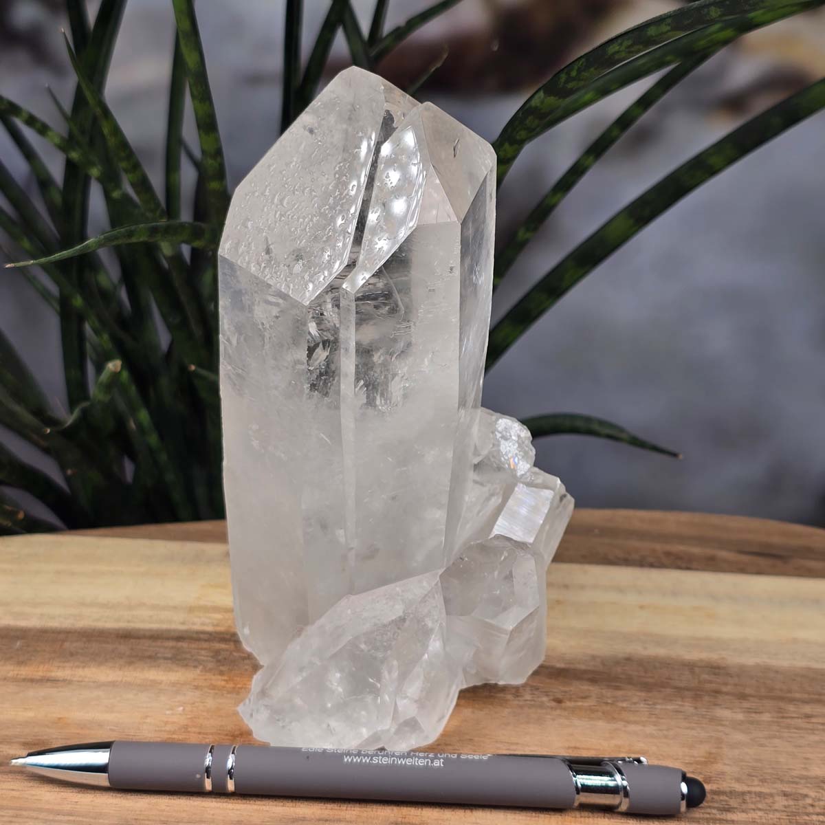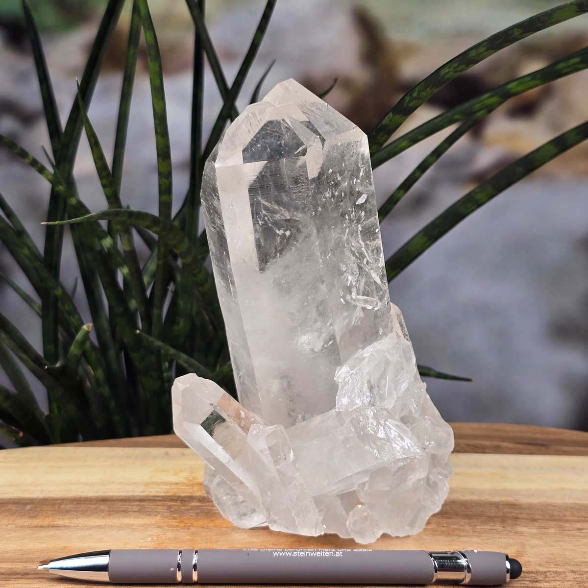 Il quarzo ialino è una pietra particolarmente straordinaria! Rappresenta chiarezza, stabilità e purezza. Questi pezzi possono essere usati in modo eccellente per ricaricare altre pietre e braccialetti, pulendoli prima con acqua corrente e poi lasciandoli tutta la notte sopra il pezzo di quarzo ialino. Il quarzo ialino ricorda alle altre pietre la loro forza e le rigenera. Le piramidi di quarzo ialino richiedono poca manutenzione, basta spolverarle o aspirarle delicatamente.