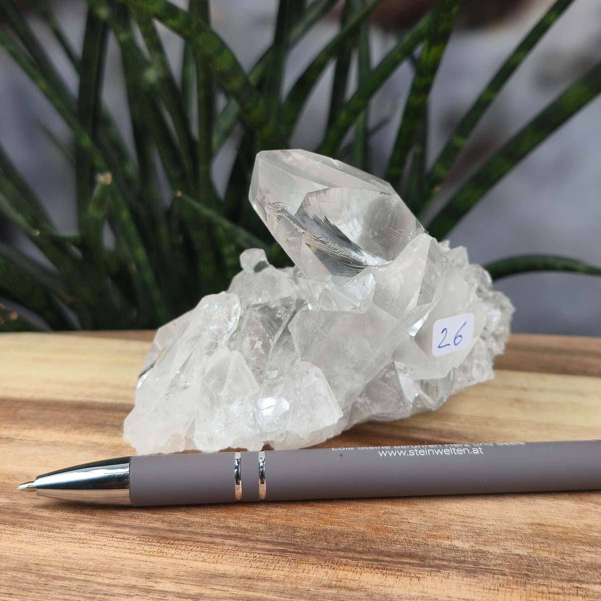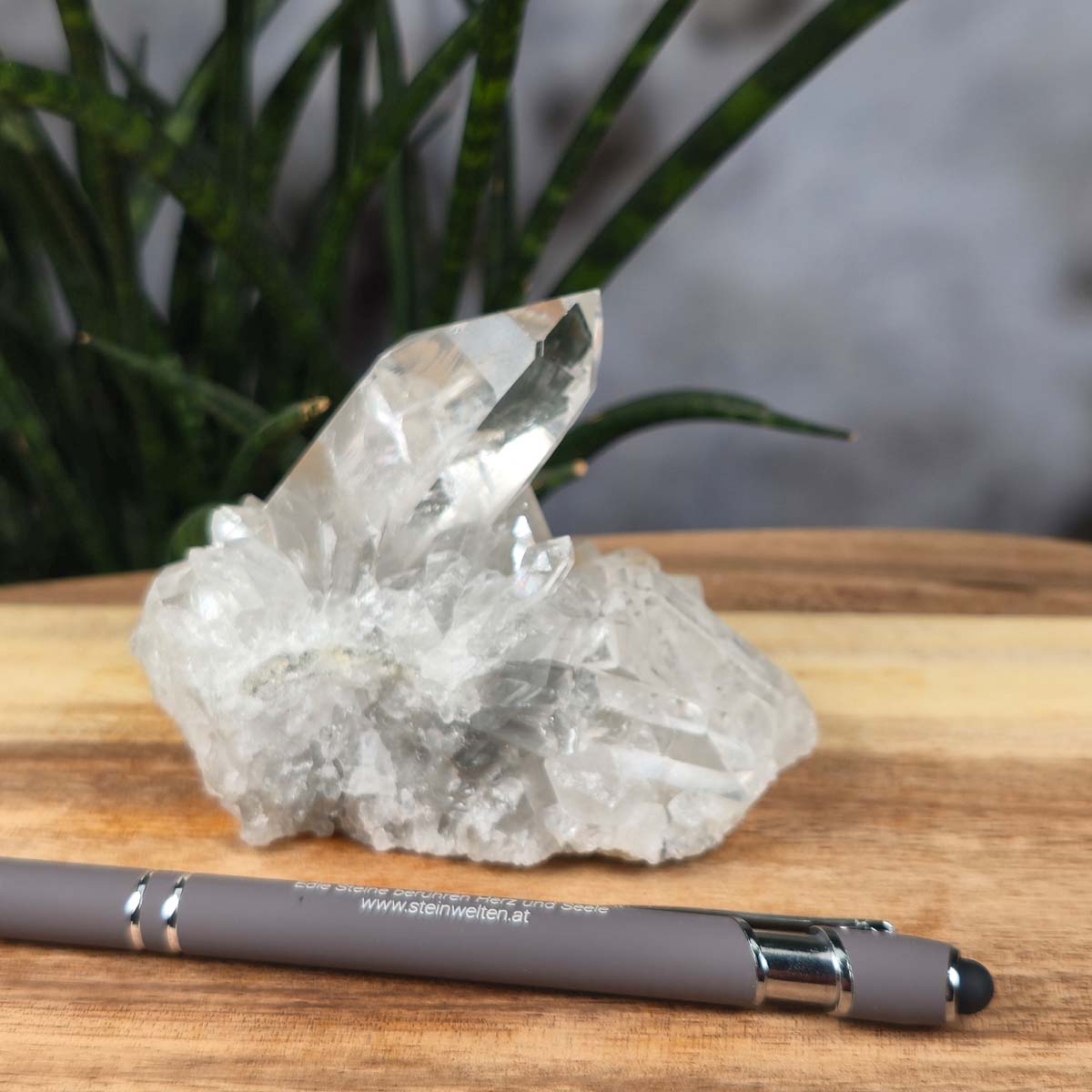 Il quarzo ialino è una pietra particolarmente straordinaria! Rappresenta chiarezza, stabilità e purezza. Questi pezzi possono essere usati in modo eccellente per ricaricare altre pietre e braccialetti, pulendoli prima con acqua corrente e poi lasciandoli tutta la notte sopra il pezzo di quarzo ialino. Il quarzo ialino ricorda alle altre pietre la loro forza e le rigenera. Le piramidi di quarzo ialino richiedono poca manutenzione, basta spolverarle o aspirarle delicatamente.