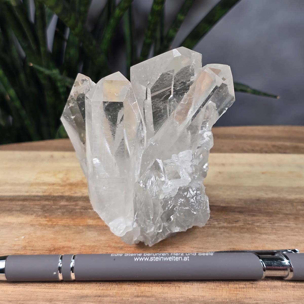 Il quarzo ialino è una pietra particolarmente straordinaria! Rappresenta chiarezza, stabilità e purezza. Questi pezzi possono essere usati in modo eccellente per ricaricare altre pietre e braccialetti, pulendoli prima con acqua corrente e poi lasciandoli tutta la notte sopra il pezzo di quarzo ialino. Il quarzo ialino ricorda alle altre pietre la loro forza e le rigenera. Le fette di quarzo ialino richiedono poca manutenzione, basta spolverarle o aspirarle delicatamente.