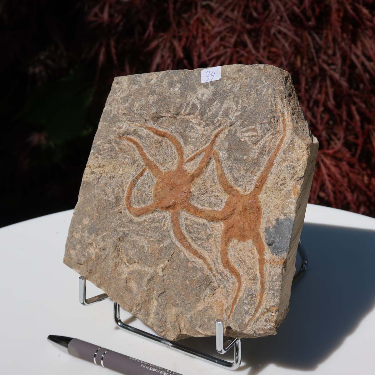 Queste stelle marine fossilizzate - stelle serpente Ophiura sp. provenienti dal Marocco convincono per la loro bellezza naturale e per la eccezionale precisione dei dettagli. Le loro strutture fini e i contorni delicati rendono ogni pezzo una piccola opera d'arte della natura. Selezionate con cura, queste stelle marine fossilizzate si presentano nella loro forma originale e autentica. Che siano un elemento decorativo elegante per la casa, un punto focale unico in ufficio o parte di una collezione – queste stelle marine portano eleganza naturale e una atmosfera armoniosa in ogni ambiente.