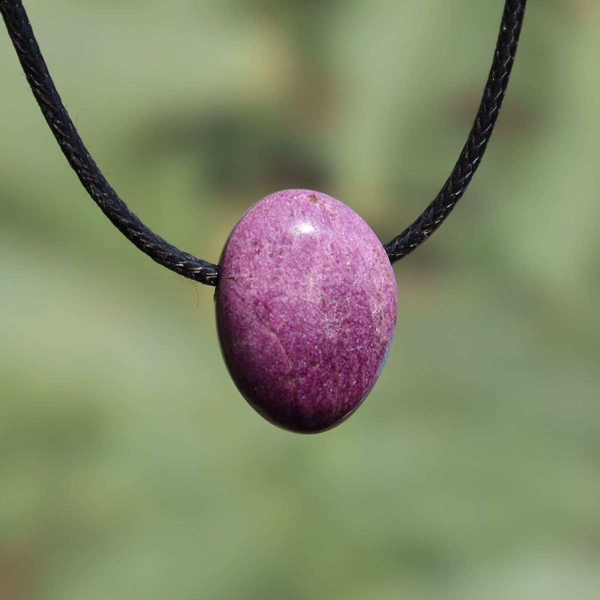 Pura presenza! Questo pendente in stichtite è tutt'altro che ordinario. Ogni pietra porta la sua struttura unica, le sue sfumature di colore individuali e piccole inclusioni che la rendono un vero pezzo unico. La stichtite è un minerale affascinante e raro della famiglia dei cromomagnesiocarbonati; a causa della sua rarità e della notevole formazione cristallina, è una pietra particolarmente ambita da collezionisti e appassionati di minerali! Ogni stichtite è un pezzo unico con una struttura e un gioco di colori propri. I nostri pendenti sono selezionati con cura e forati con amore e abilità nel nostro laboratorio!