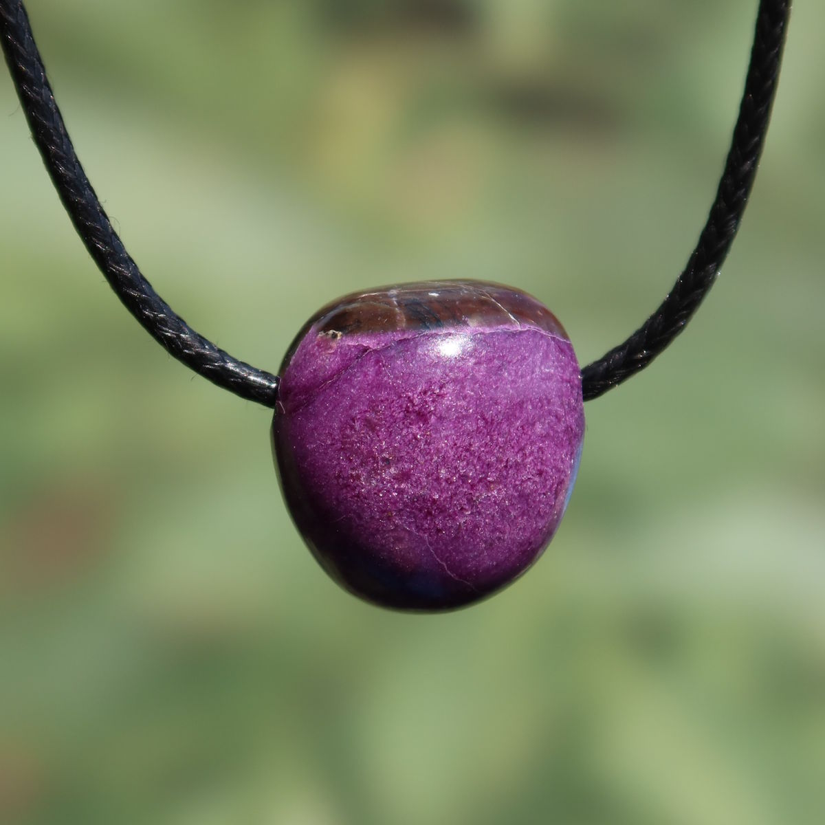 Pura presenza! Questo pendente in stichtite è tutt'altro che ordinario. Ogni pietra porta la sua struttura unica, le sue sfumature di colore individuali e piccole inclusioni che la rendono un vero pezzo unico. La stichtite è un minerale affascinante e raro della famiglia dei cromomagnesiocarbonati; a causa della sua rarità e della notevole formazione cristallina, è una pietra particolarmente ambita da collezionisti e appassionati di minerali! Ogni stichtite è un pezzo unico con una struttura e un gioco di colori propri. I nostri pendenti sono selezionati con cura e forati con amore e abilità nel nostro laboratorio!