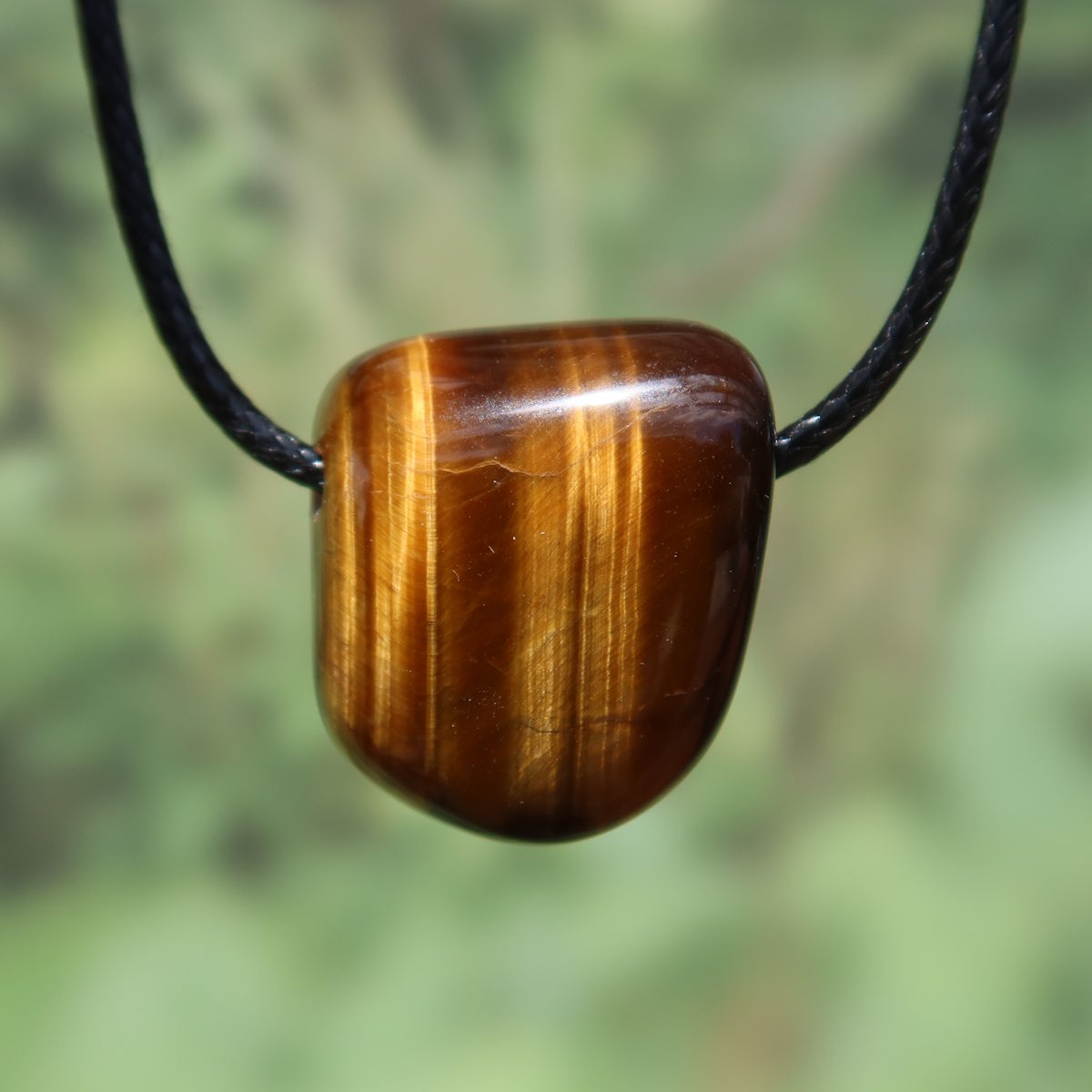 Luminoso, caldo e inconfondibile, con il suo caratteristico bagliore e le striature marcate, questo pendente in occhio di tigre si distingue da qualsiasi gioiello comune. La superficie vivace lo rende un pezzo unico che emana immediatamente personalità. Ogni pendente viene selezionato con cura e forato con amore e abilità nella nostra officina artigianale!