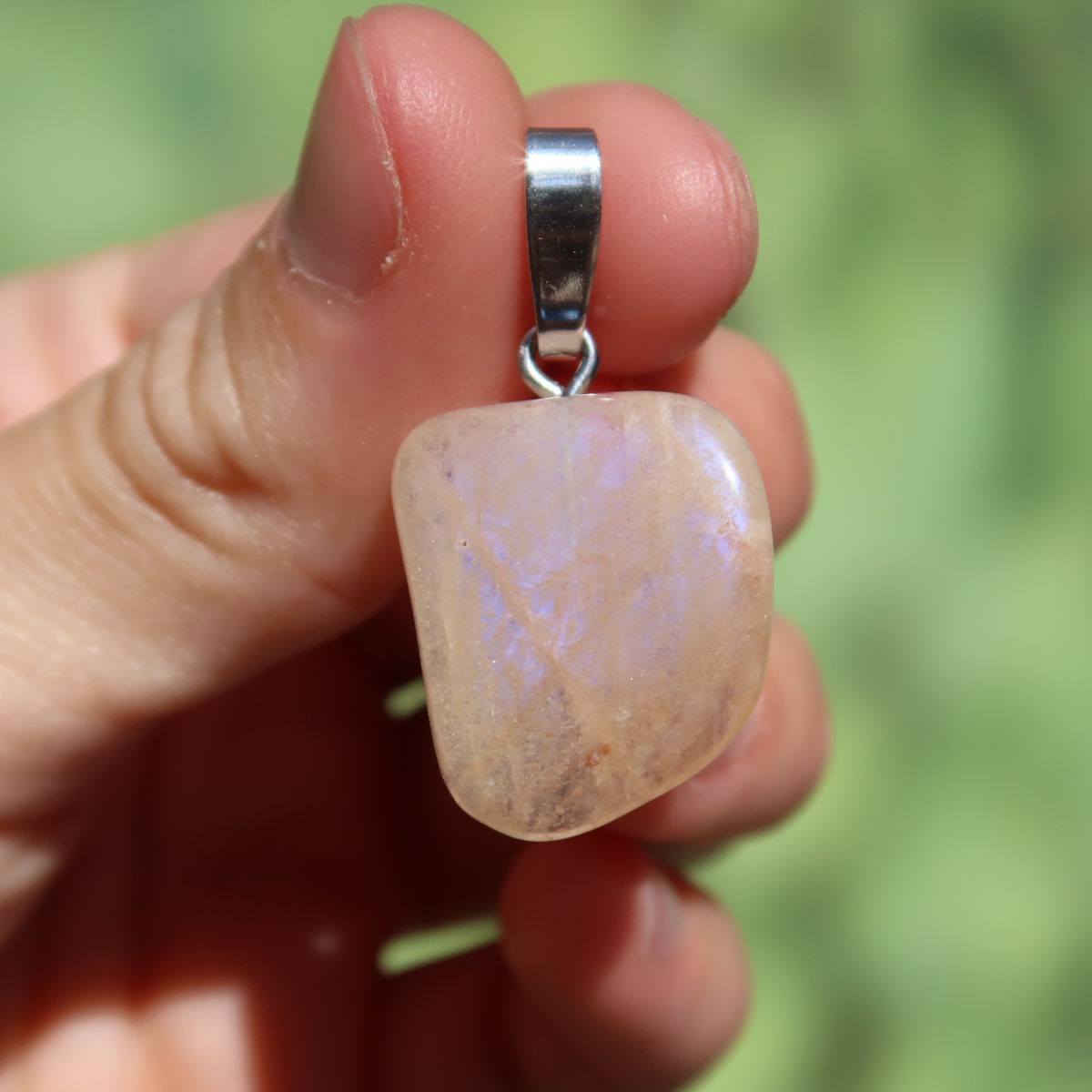 La nostra pietra di luna è una vera pietra di luna, non un “pietra di luna arcobaleno” come viene spesso chiamato il labradorite bianco. Quest’ultimo è disponibile separatamente nel negozio.