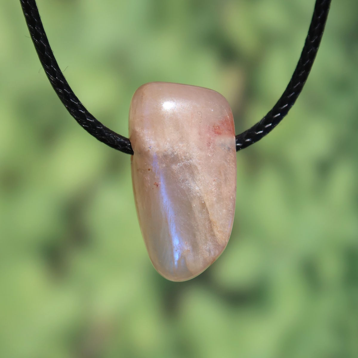 La nostra pietra di luna è vera pietra di luna, non un “pietra di luna arcobaleno” come viene spesso chiamato il labradorite bianco. Quest’ultimo è disponibile separatamente nel negozio.