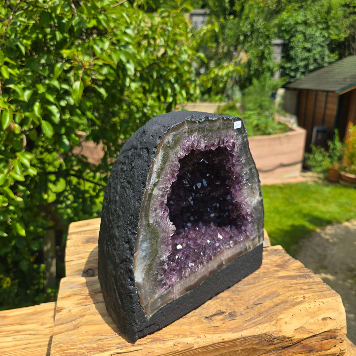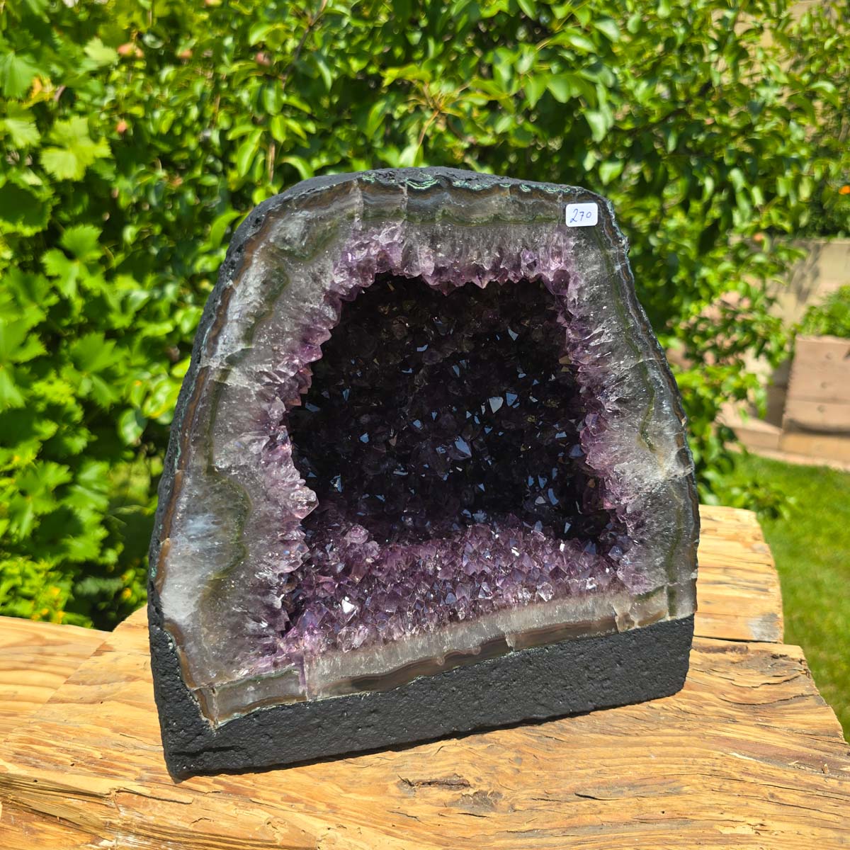 Sono prodotti naturali puri, il suo interno è naturalmente cresciuto e può presentare anche piccoli cristalli di calcite, inclusioni di rutilo o altre inclusioni minerali. Vengono estratti e tagliati con cura, i bordi sono lucidati. Questo fa risaltare particolarmente i colori e le forme del bordo, che spesso è composto da agata, calcedonio e cristallo di rocca. Per garantire stabilità, la base sul fondo è rinforzata con cemento. La Il retro della geode di ametista è rivestito con vernice, per evitare la caduta di particelle dalla superficie esterna e renderla così "adatta alla casa".