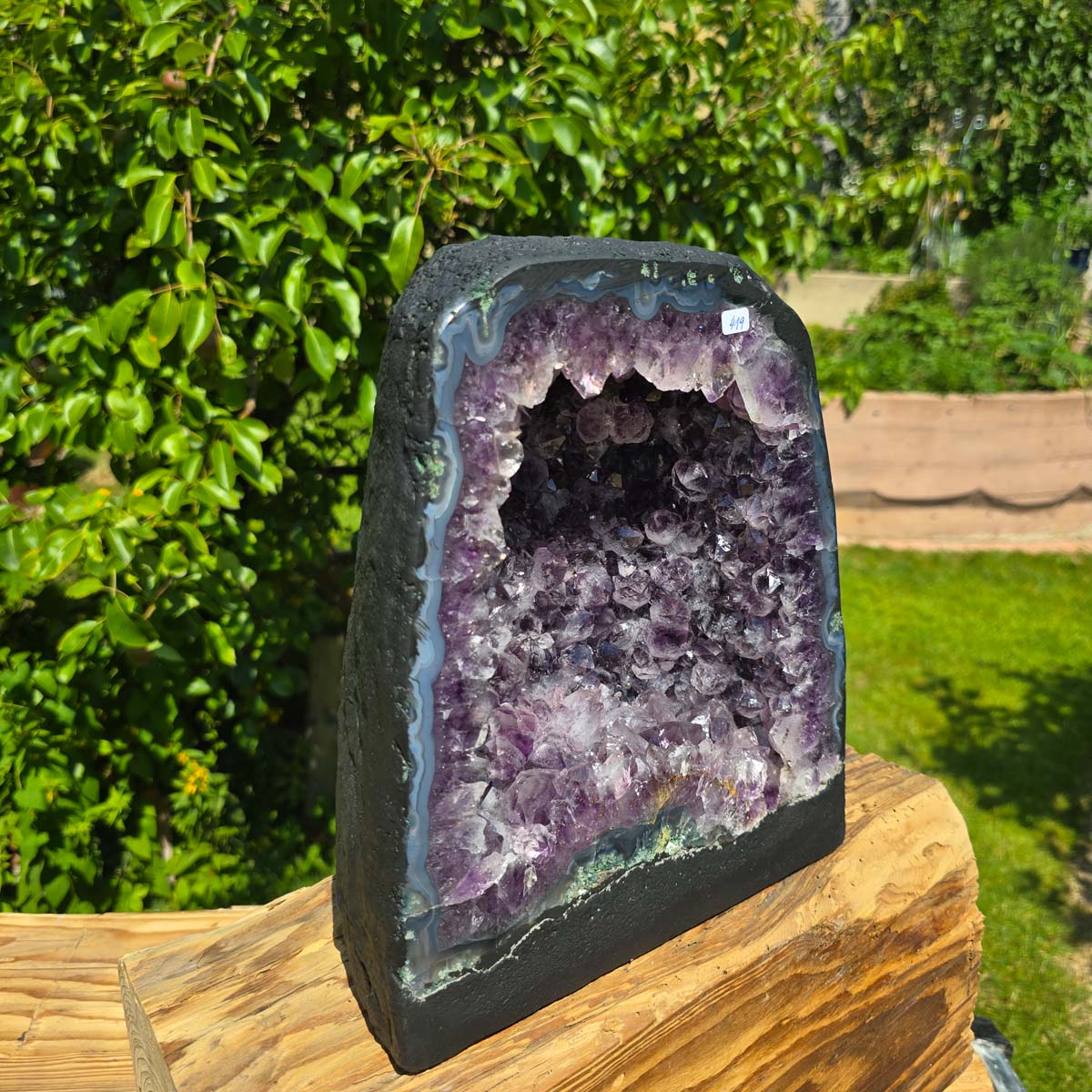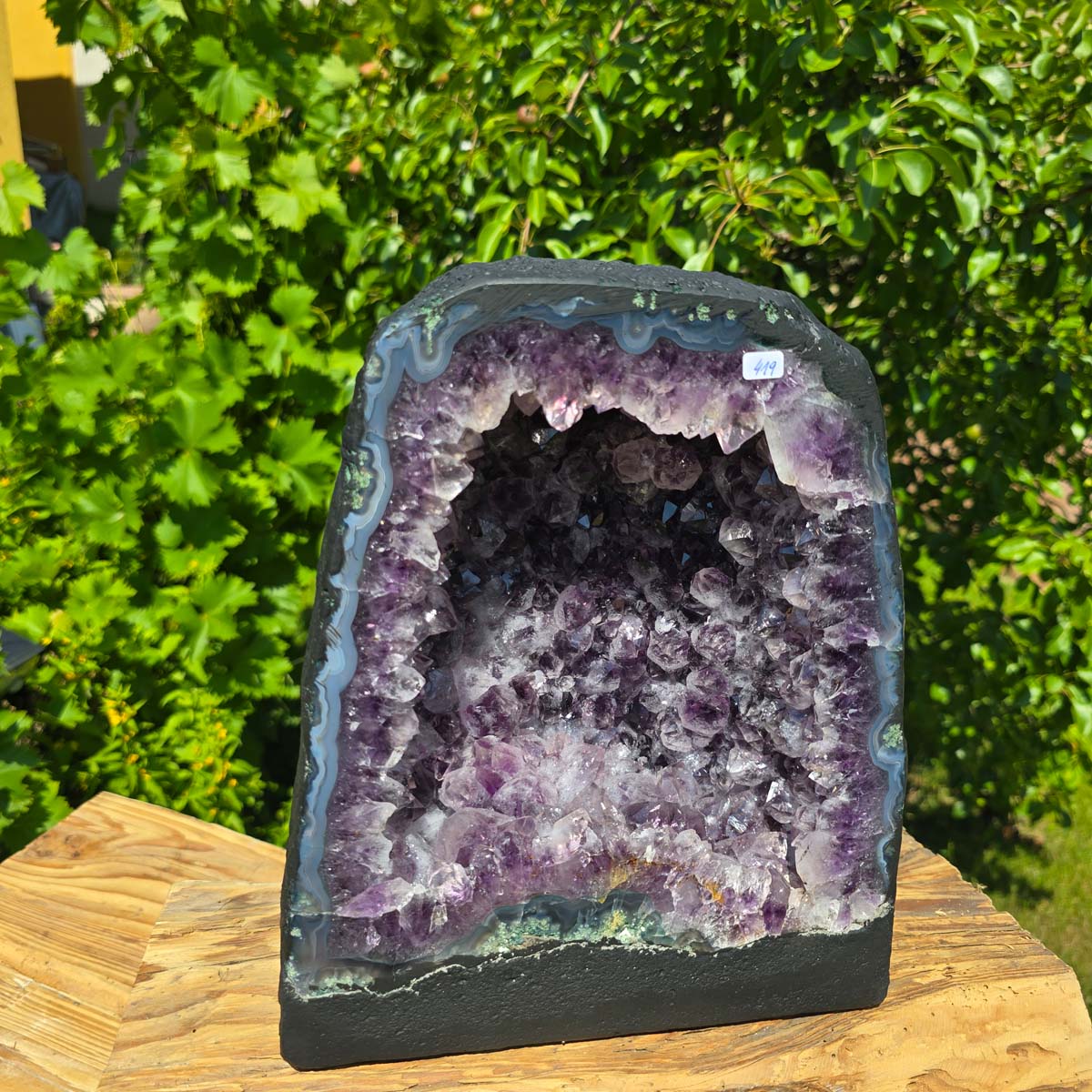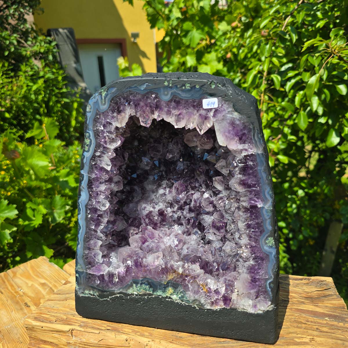 Sono prodotti naturali puri, il suo interno è naturalmente cresciuto e può presentare anche piccoli cristalli di calcite, inclusioni di rutilo o altre inclusioni minerali. Vengono estratti e tagliati con cura, i bordi sono lucidati. Questo fa risaltare i colori e le forme del bordo, che spesso è composto da agate, calcedonio e cristallo di rocca. Per garantire stabilità, la base sul fondo è rinforzata con cemento. La Il retro della geode di ametista è rivestito con vernice, per evitare la caduta di particelle dalla superficie esterna e renderla così "adatta alla casa".