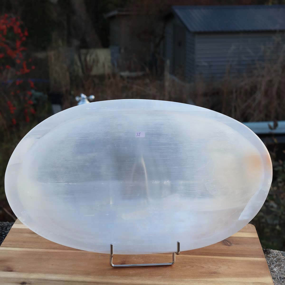 Ogni ciotola di ricarica è realizzata a mano con selenite di alta qualità, non trattata. La superficie liscia e setosa sottolinea l’eleganza del minerale e rende ogni ciotola un elemento decorativo in ogni ambiente. Grazie alla sua energia calmante e luminosa, la selenite è perfetta anche per spazi di meditazione, comodini o qualsiasi altra zona della casa.
