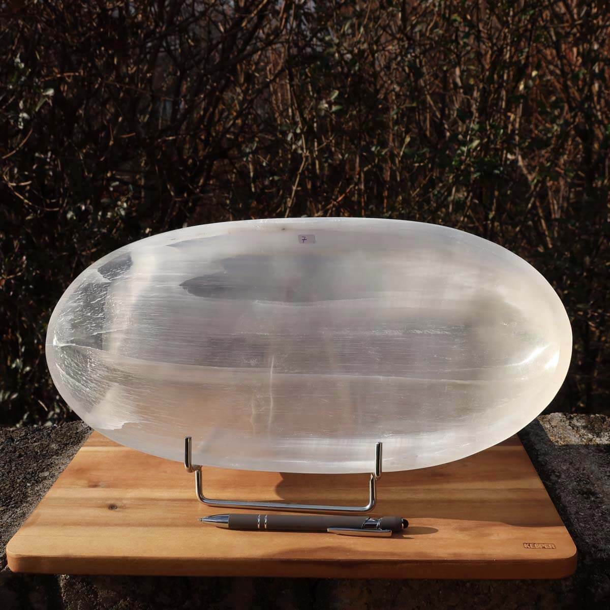 La selenite è utilizzata nella litoterapia per aumentare la stabilità e rafforzare i nervi. Questa pietra preziosa può aiutare a gestire meglio lo stress e a portare rilassamento. È considerata un grande portatore di luce ed è quindi nota come una forte pietra protettiva. Questo effetto si manifesta particolarmente se la selenite viene indossata come ciondolo o posizionata in casa come torretta o sfera. Troverai la selenite in molte altre forme qui nel negozio!