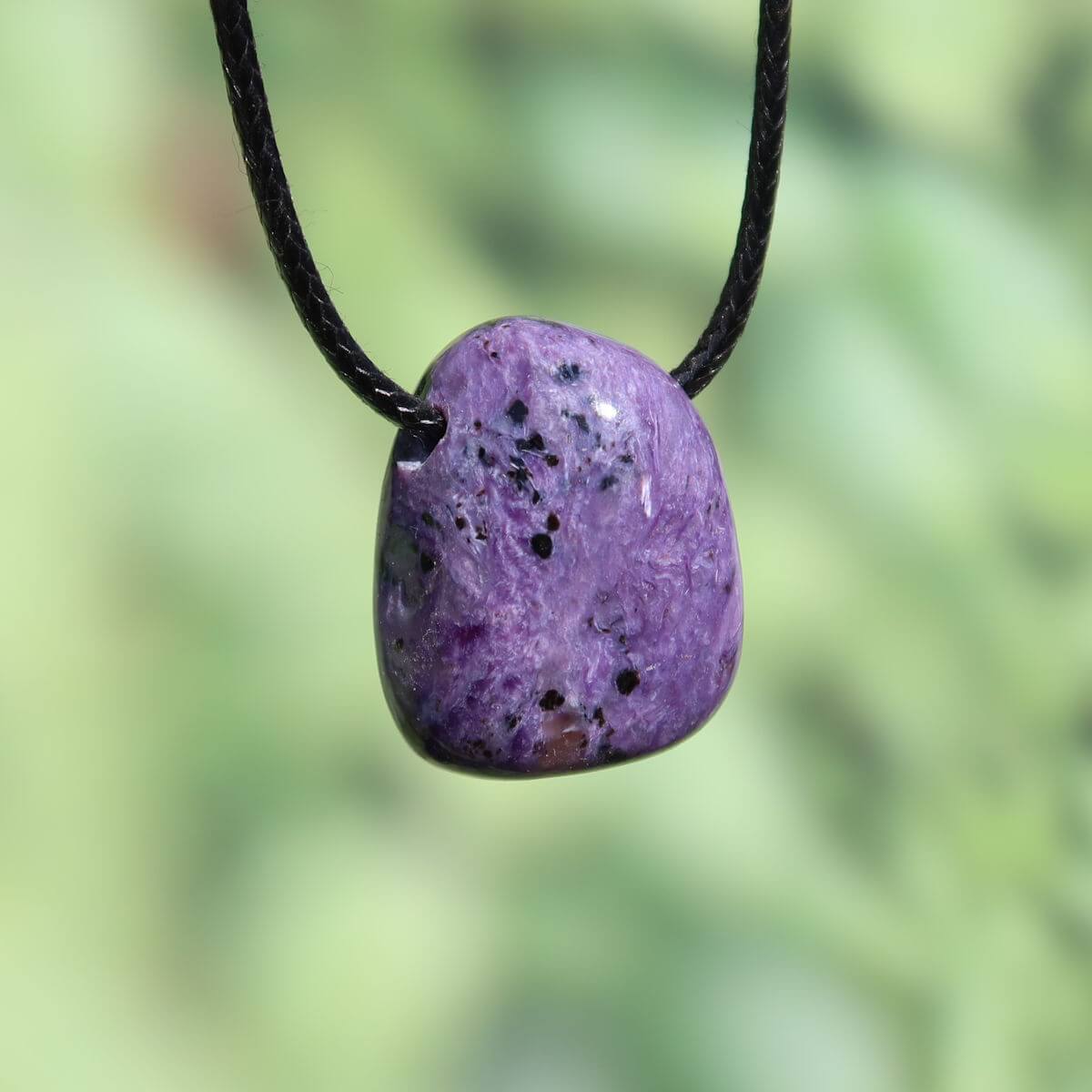 Dieser Charoit Anhänger ist ein außergewöhnlicher Edelstein, der durch seine Seltenheit und auffällige Farbe begeistert. Unsere Charoit Edelstein Anhänger kommen aus Russland und sind von auffallend schöner Qualität. Dieser Edelstein zeichnet sich durch seine außergewöhnliche, tiefviolette Farbe und charakteristischen Muster, die in jedem Stein auf natürliche Weise entstehen, aus. Unsere hochwertigen Charoit Edelstein Anhänger werden  sorgfältig ausgewählt und in unserer eigenen Werkstatt mit Liebe und Können durchgebohrt!