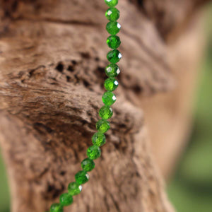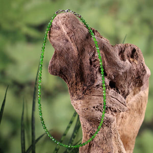 Diese Chromdiopsid Halskette ist ein wahrer Blickfang. Mit ihren intensiven grünen Farbnuancen bringt sie Frische und Stil in jedes Outfit. Diese besondere Edelsteinkette wurde von uns mit Liebe in Handarbeit angefertigt und besteht aus echten Silberteilen welche eine Rhodium Beschichtung besitzen, was das Anlaufen verhindert. Die hochwertige Verarbeitung und das feine Design machen diese Kette zu einem edlen Accessoire, das sowohl mit schlichten als auch mit aufwendigeren Looks kombiniert werden kann. Der praktische Verschluss sorgt für sicheren Halt und einen angenehmen Tragekomfort.