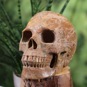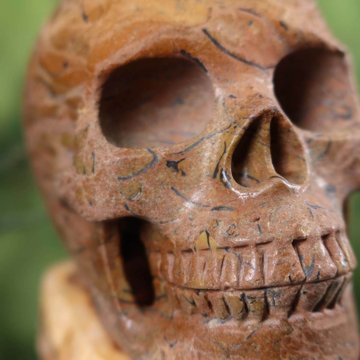 Der aus Naturstein geschliffener Schädel ist ein wahres Meisterwerk, das durch präzise Handarbeit entsteht. Jeder Totenkopf wird sorgfältig aus einem einzigen Stück Edelstein gefertigt. Diese aufwändige Verarbeitung macht jeden Skull zu einem Unikat, das in Optik, Farbe und Energie einzigartig ist.