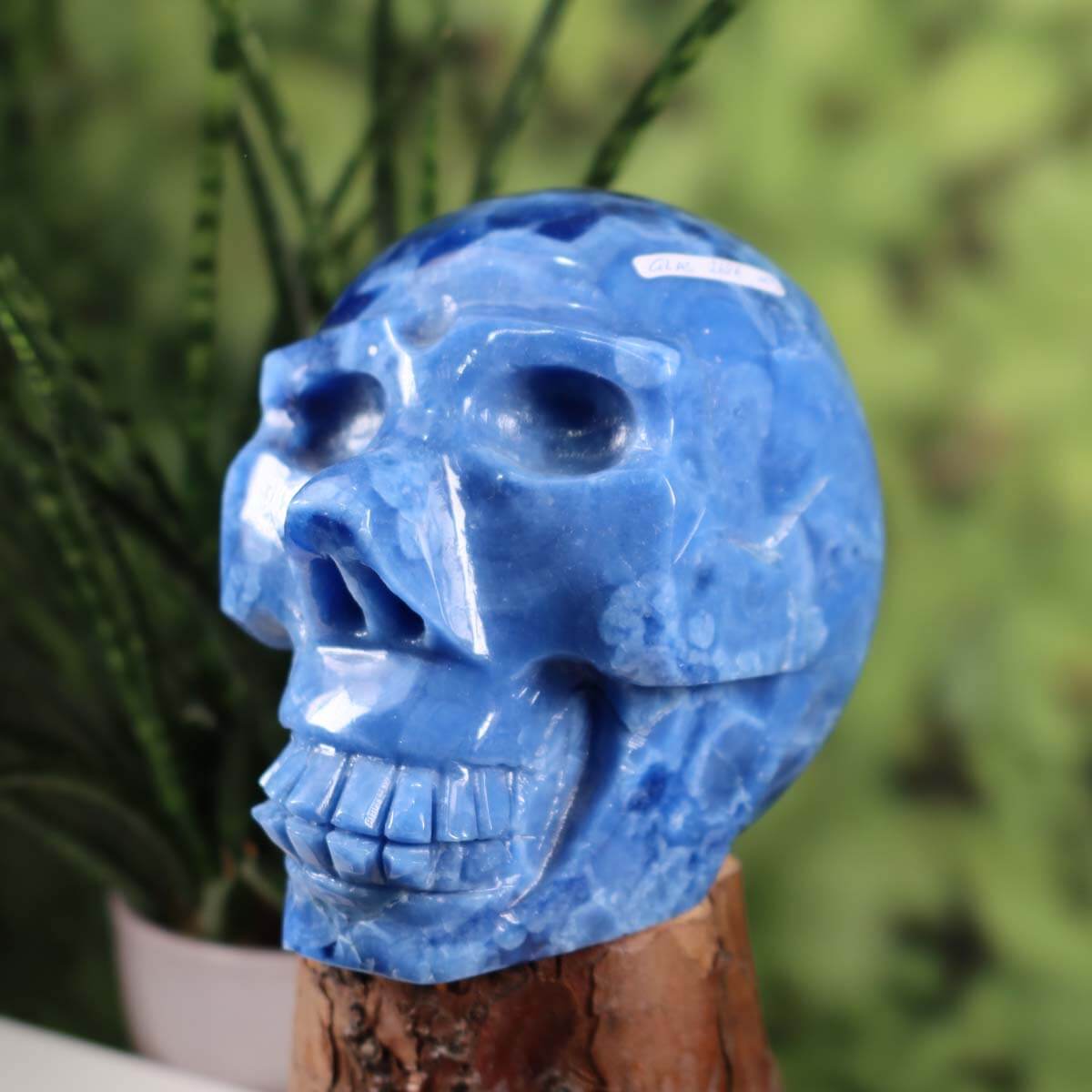 Unser Glas (synthetisch) geschliffener Natur Stein Schädel ist ein wahres Meisterwerk, das durch präzise Handarbeit entsteht. Jeder Totenkopf wird sorgfältig aus einem einzigen Stück Edelstein gefertigt. Diese aufwändige Verarbeitung macht jeden Skull zu einem Unikat, das in Optik, Farbe und Energie einzigartig ist.