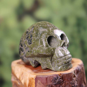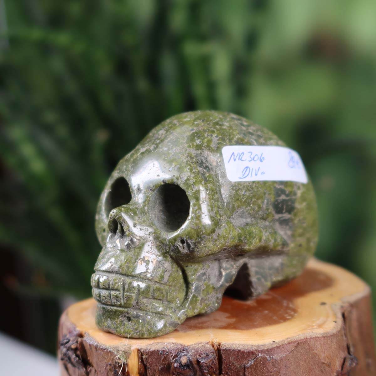 Unser Naturstein - außergewöhnliche Muster- Sammlerstück geschliffener Schädel ist ein wahres Meisterwerk, das durch präzise Handarbeit entsteht. Jeder Totenkopf wird sorgfältig aus einem einzigen Stück Edelstein gefertigt. Diese aufwändige Verarbeitung macht jeden Skull zu einem Unikat, das in Optik, Farbe und Energie einzigartig ist.