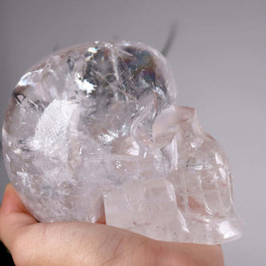 Dieser Bergkristall 1A Edelsteinschädel ist ca. 11x8 cm groß und wiegt 1,00 kg. Da es sich hier um Natursteine handelt, können Vertiefungen, Kratzer, Unreinheiten, Verfärbungen im Stein vorkommen.