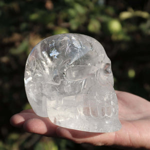 Unser großer Bergkristall 1A geschliffener Natur Stein Schädel ist ein wahres Meisterwerk, das durch präzise Handarbeit entsteht. Jeder Totenkopf wird sorgfältig aus einem einzigen Stück Edelstein gefertigt. Diese aufwändige Verarbeitung macht jeden Skull zu einem Unikat, das in Optik, Farbe und Energie einzigartig ist.
